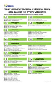 Pendant cette fermeture, des points de dépôt alternatifs seront disponibles pour recevoir vos matières (voir document ci-dessous).