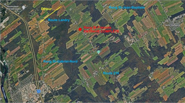 Un détour sera possible via la route Landry et le rang Saint-Gabriel Nord.