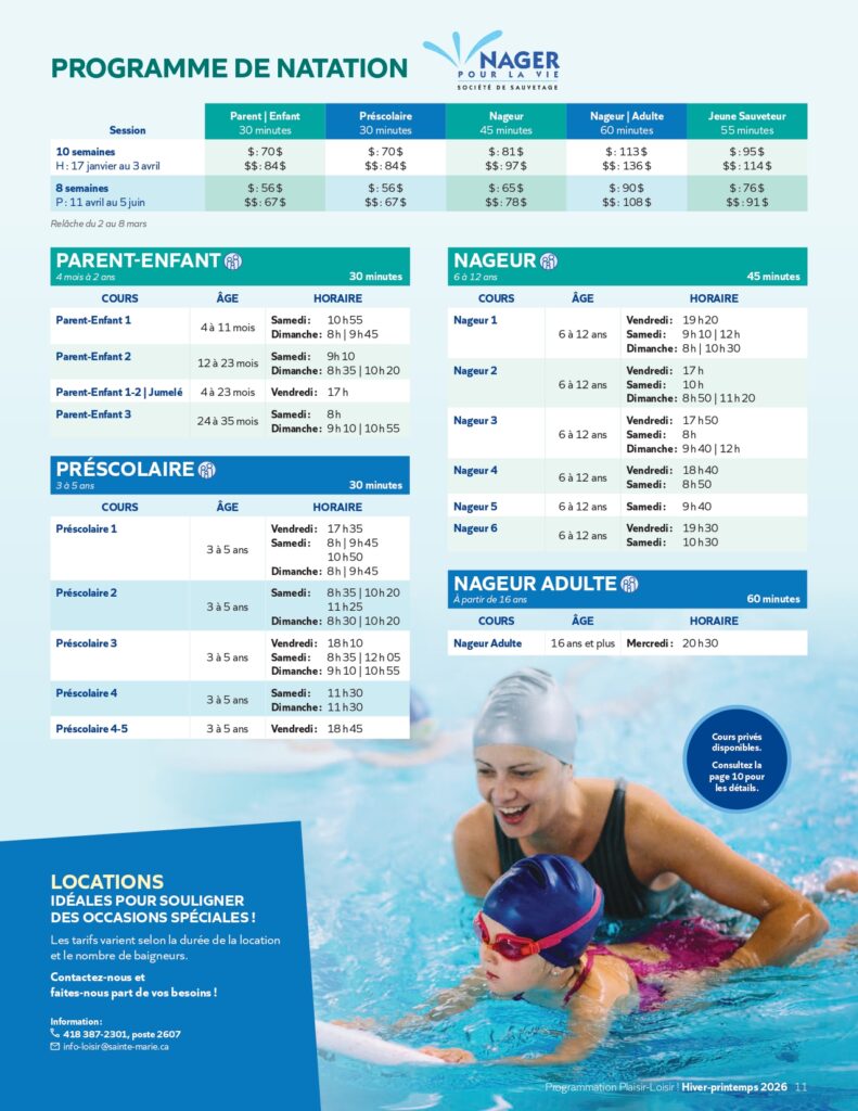 PAGE 11 – PROGRAMME DE NATATION